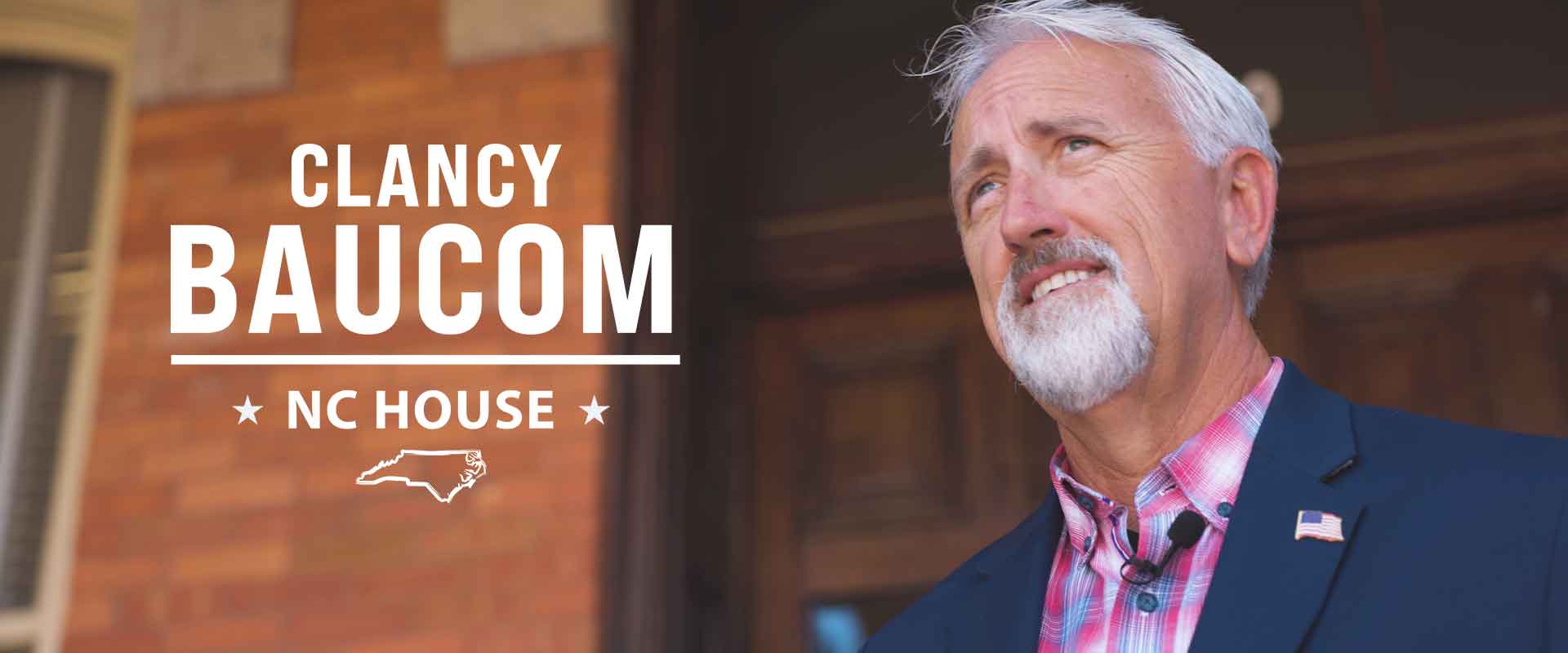 Clancy Baucom is a native of rural Union County whose family has been rooted here for generations. He is a businessman, family man, farmer, and Sunday school teacher. Baucom believes in an America First agenda for North Carolina so every family can thrive without the burden of an overreaching government.